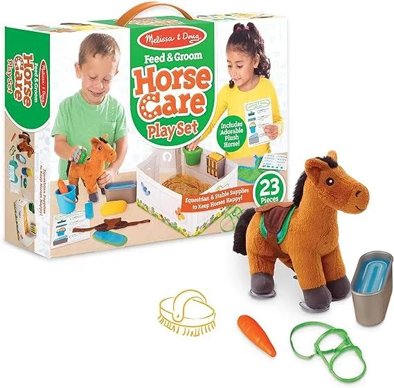 The Melissa & Doug Feed & Groom Horse Care Play Set is perfect for the little cowboy or cowgirl who needs a place to take care of horses.