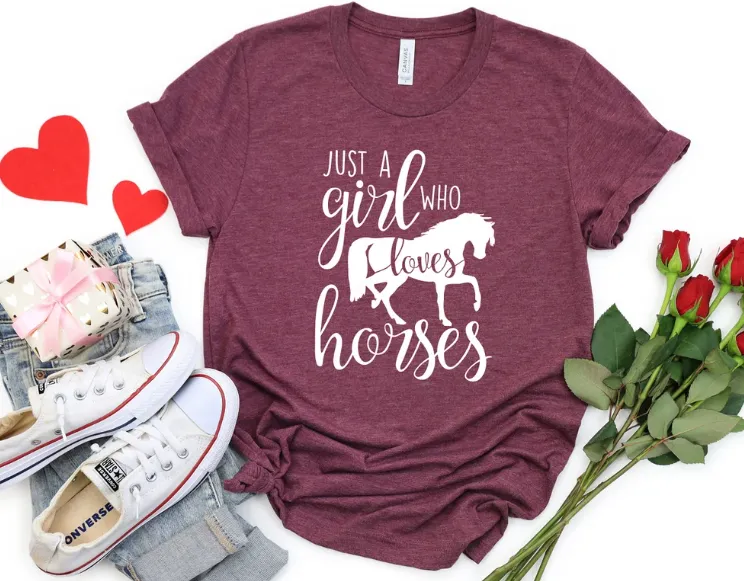 Just a Girl Who Loves Horses T-Shirt is from Custom Tea Shirt on Etsy.